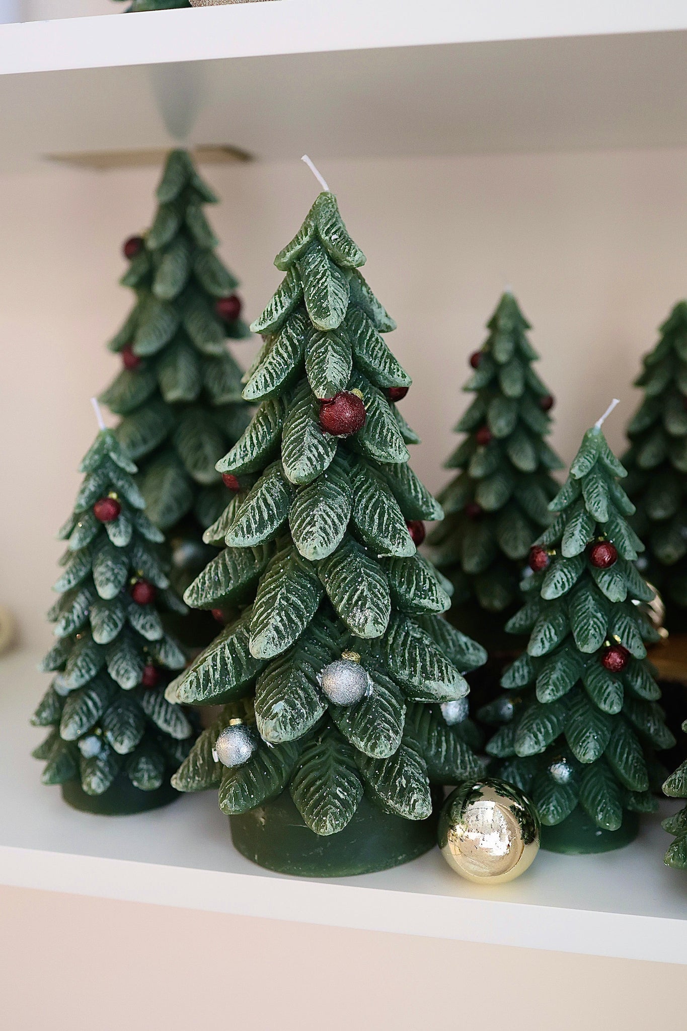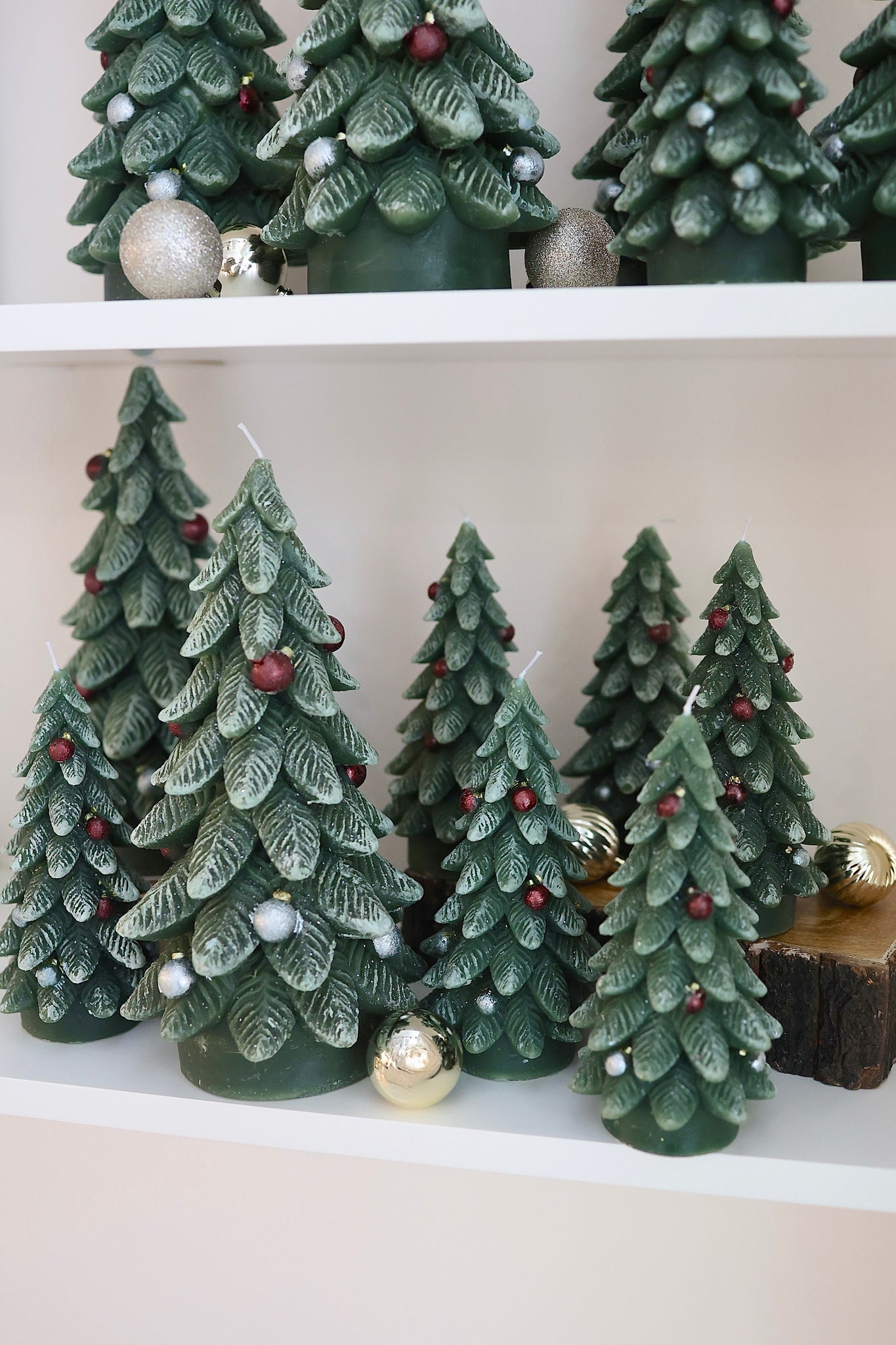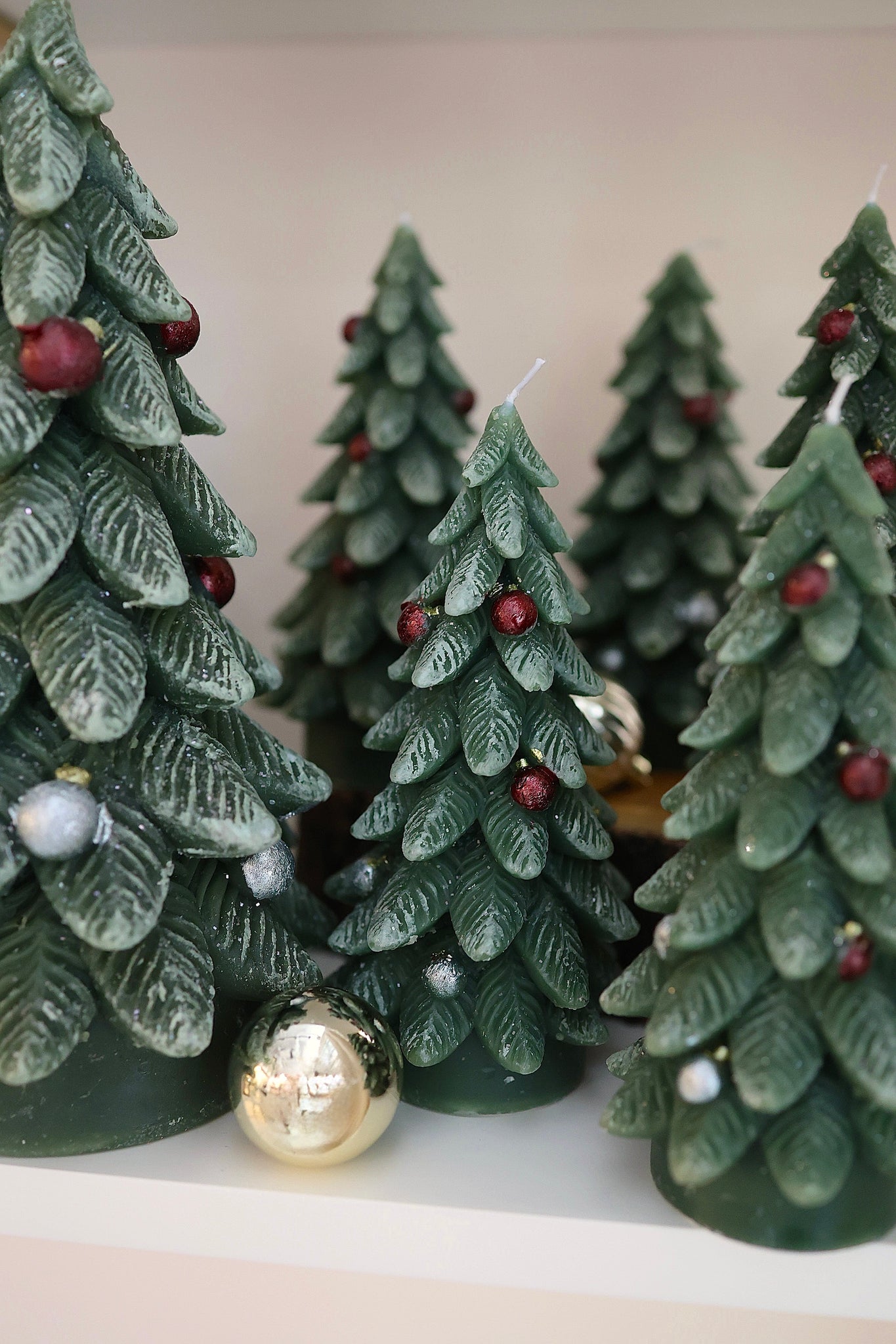 Create a warm, inviting holiday ambiance with our Christmas Tree Candles. Its deep green color and charming tree shape make it a lovely addition to mantels, tablescapes, and gift boxes.